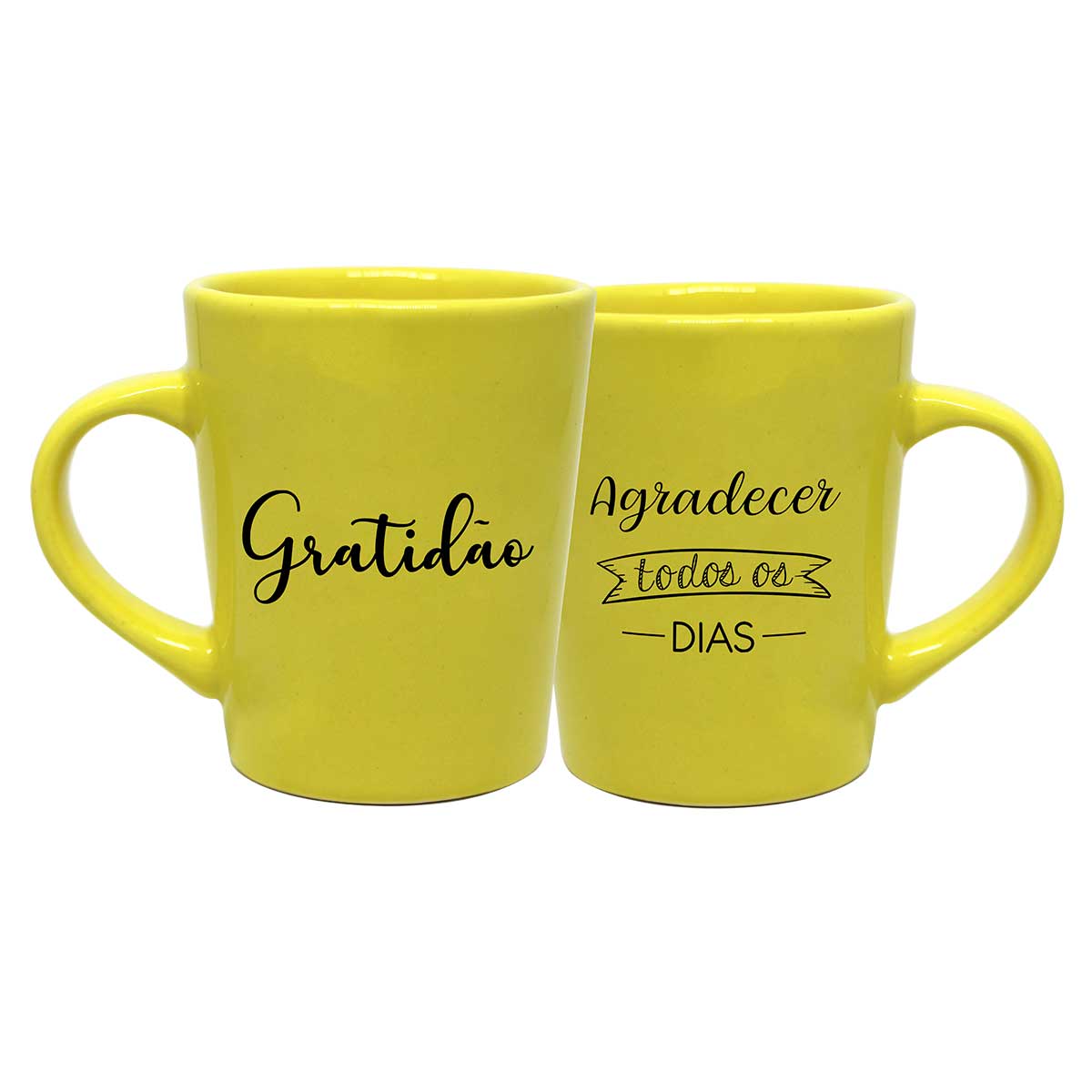 Caneca em Cerâmica Gratidão Amarela Fábrica Catarina